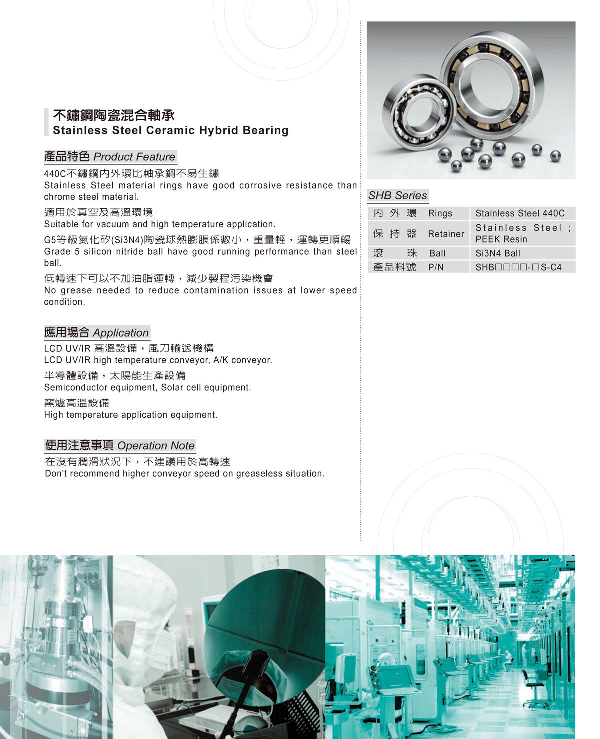 不鏽鋼陶瓷混合軸承 首頁 產品介紹 JWT特殊精密系列 不鏽鋼陶瓷混合軸承 型號 : Stainless 440C不鏽鋼內外環比軸承鋼不易生鏽,適用於真空及高溫環境。G5等級氮化矽(Si3N4)陶瓷球熱膨脹係數小,重量輕,運轉更順暢。低轉速下可以不加油脂運轉,減少製程污染機會。 數量 : 加入詢價